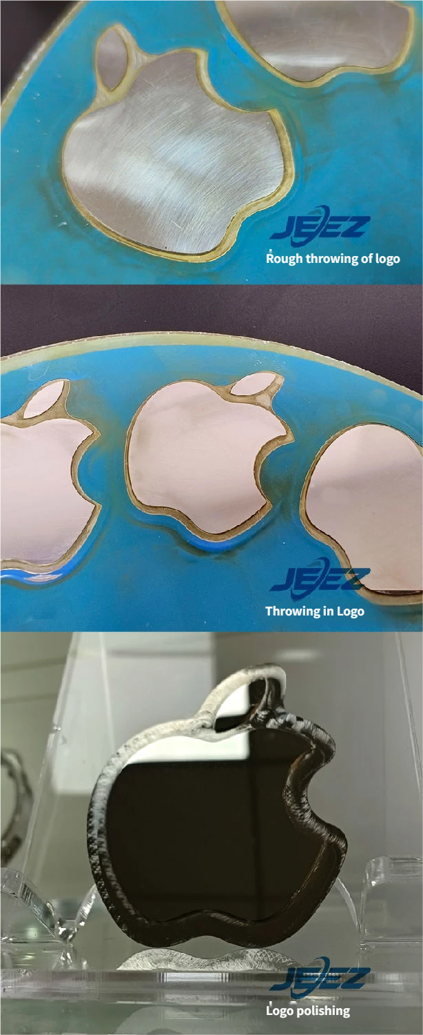 Gizhil Electronic’s custom metal polishing slurry for the Apple Logo involves three stages: coarse grinding, medium grinding, and fine polishing. The polishing rate is fast, the surface finish is high, and the logo surface is free of scratches and pits, maintaining a flawless mirror-like appearance after processing.