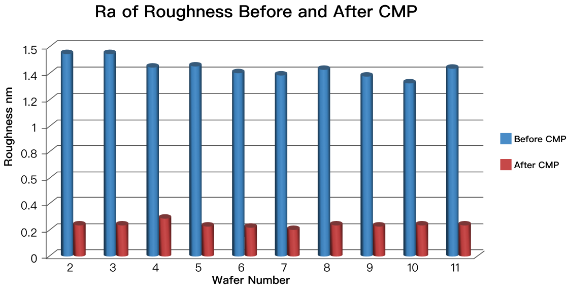 The surface roughness Ra after CMP is 0.3nm, which is within the standard range.