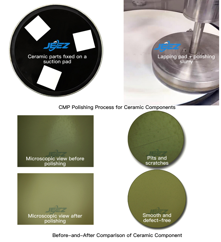 Jizhi Electronics’ ceramic polishing slurry is suitable for mirror polishing of precision ceramic components made of carbides, nitrides, oxides, and borides. Through the CMP polishing process, an ideal mirror finish can be achieved. The resulting surface is smooth and flat, easy to clean, and free of residue.