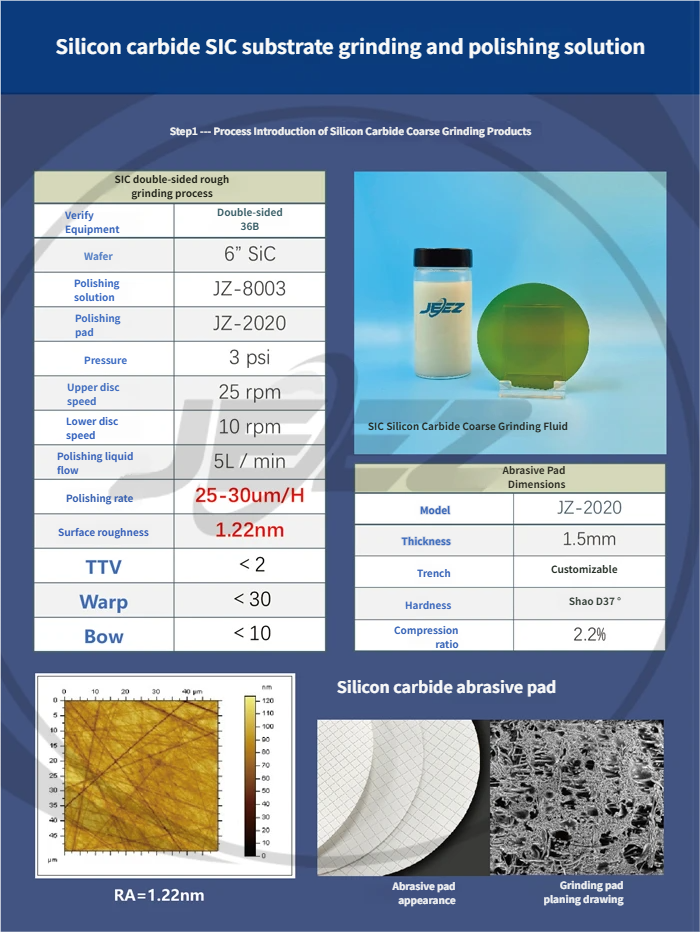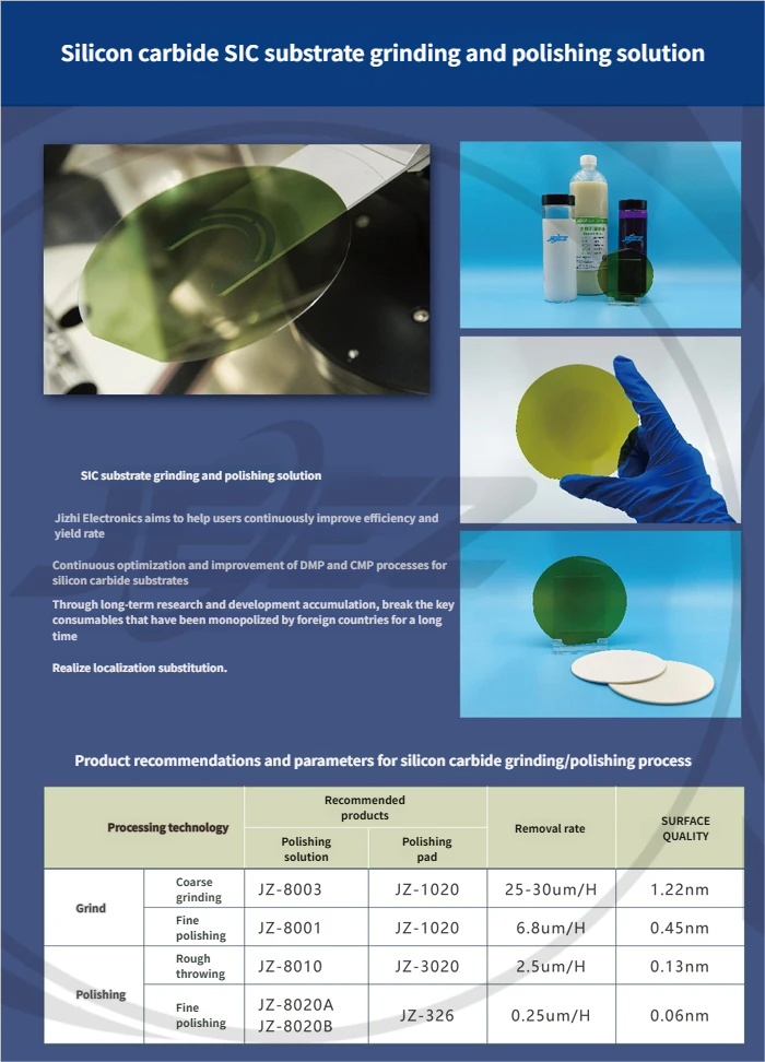 Gize Electronics aims to help users continuously improve efficiency and yield. We are dedicated to the ongoing R&D and refinement of processes for SiC substrate DMP (Double-sided Mechanical Polishing) and CMP (Chemical Mechanical Polishing). Through long-term R&D accumulation, we have broken the long-term foreign monopoly on key consumables, achieving domestic substitution. The following provides a detailed explanation of how to select and match slurries (grinding/polishing), pads (grinding/polishing) for SiC substrate processing, the performance of CMP products, as well as product recommendations and parameter details for SiC grinding/polishing processes.