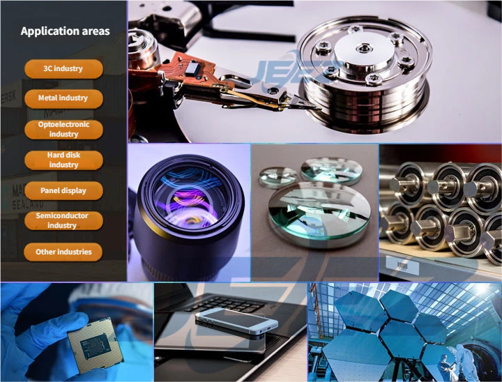 CeO2 (cerium oxide) polishing slurry: Suitable for polishing soft metals, silicon, and other materials. It is the most widely used polishing slurry, commonly applied in the chemical mechanical polishing of products such as mobile phone screens, optical glass, LCD displays, and hard disks.